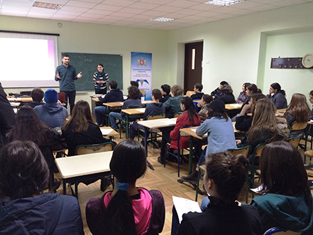 On January 27, 2017, the Human Rights Academy of the Public Defender delivered a short course for the first experimental high school students, which was led by Saba Brachveli and Aldona Kachibaia, representatives of the Department of Criminal Justice of the Public Defender's Office. The main topic of the course was the rights of young people above the age of 14 years during having contacts with law enforcement agencies. In particular, safeguards to protect the rights of the juveniles during police activities (stopping, questioning, identification of a person, etc.) and/or criminal procedures (arrest, search, interrogation).