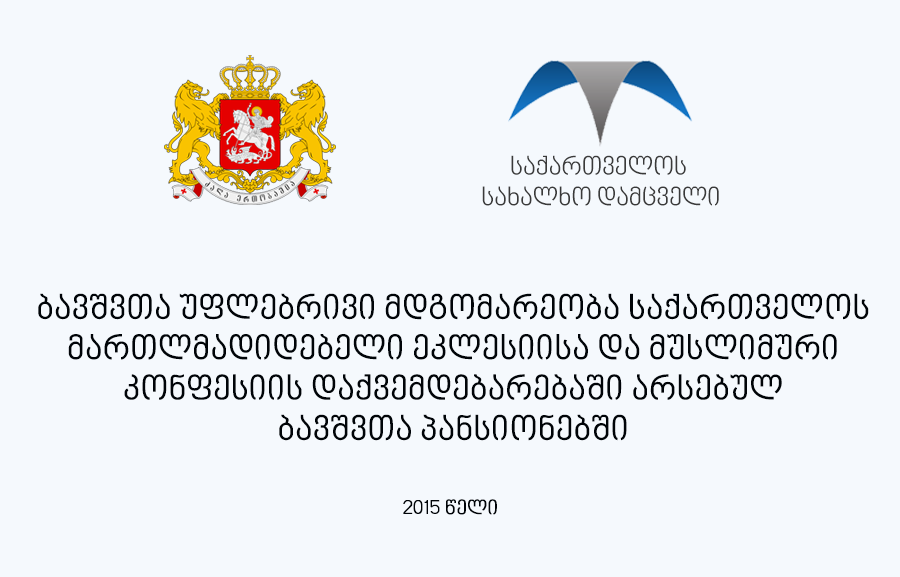 The Public Defender’s special report reflects the state of children's rights in the boarding schools subordinated to the Orthodox Church of Georgia and Muslim denominations of Georgia. The report covers the period from February 23 to March 15, 2015, and was prepared by the Public Defender's Special Preventive Group and the Center for Child’s Rights. Monitoring in the boarding schools was carried out within the scope of the mandate of the National Preventive Mechanism.