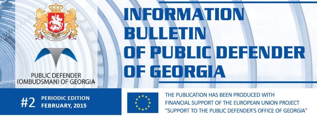 The bulletin encompasses information on visits of international experts, reports of the Public Defender, statements of the Public Defender, structural changes, recommendations and proposals sent to state authority and local self-governing bodies, all those activities that were conducted by staff members of various units of the office for protection of human rights and freedoms and raising public awareness in this area.