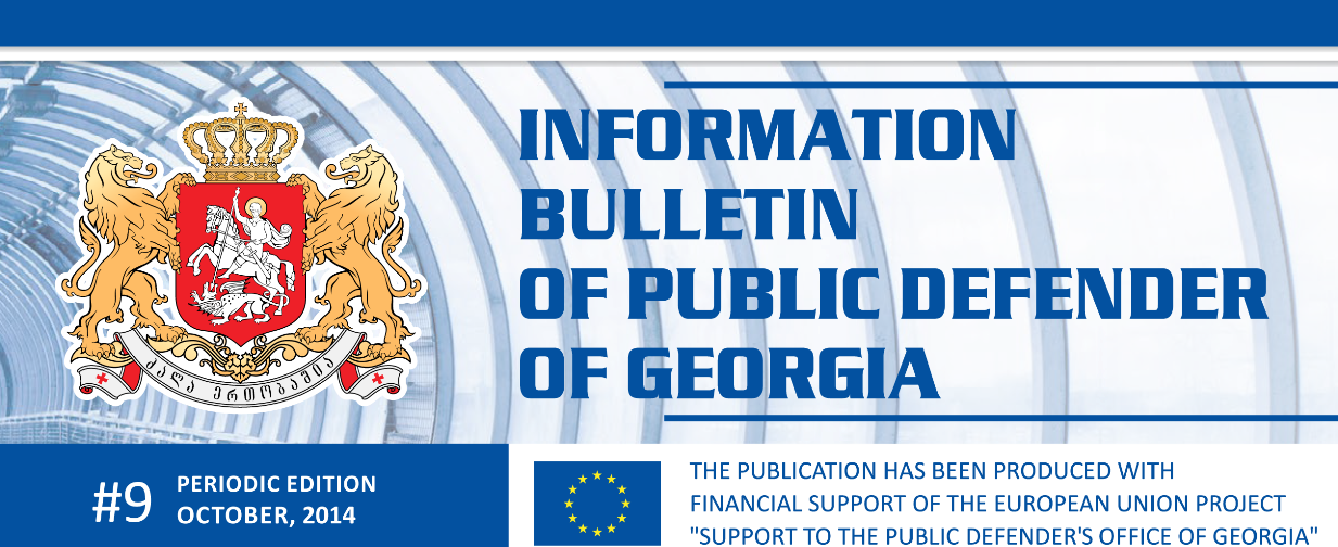 On November 11, 2014, the Public Defender of Georgia presented Information Bulletin N9. The document encompasses together information on meetings, statements, opinions and attitudes of the Public Defender regarding developments in the country; activities of the Public Defender’s Office; new developments on international arena with respect to human rights.