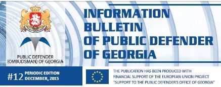 In the December bulletin you will learn that the Public Defender of Georgia was elected as a full member of the Bureau of the International Coordinating Committee; the Public Defender's Office was awarded as one of the most transparent organizations in 2010-2015 for ensuring access to public information.