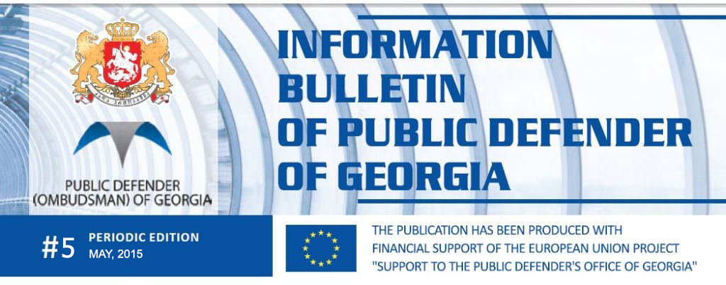 The Public Defender presented the bulletin for May to the public. The bulletin reflects work conducted on the course of the entire month, changes existing in the country with regards to human rights and freedoms, including legislative ones, attitude of government agencies and organizations toward recommendations in the Public Defender Parliamentary Report for 2014. You will see information about official meetings of the Public Defender aiming at searching for ways for improvement of the situation with regards to protection of human rights in the country.