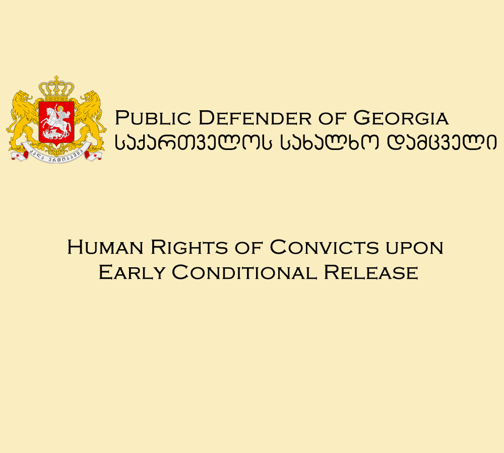 In this Special Report Public Defender of Georgia reviews legal obligations of the State institutions, highlights established functional practices of those institutions, presents the issues existing in terms of early release of inmates, identifies shortcomings of the Local Council decisions, reviews the alleged violation of the right to access to court during the deliberations on early release, as well as the problem of unsubstantiated decisions by general courts; it also presents legal analysis of the problems and issues specific recommendations for respective institutions.