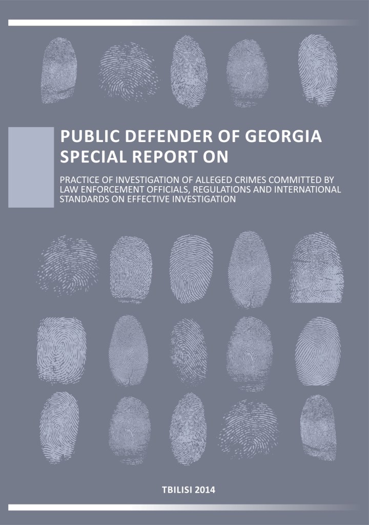 This special report provides an overview of the complaints reviewed by PDO, legislation of Georgia regarding investigation of the cases of illegal and degrading treatment from the part of the State authority representatives and the practice of their investigation; the report also gives a detailed review of the issues of investigation jurisdiction of the Ministry of Justice of Georgia, the Prosecutor’s Office of Georgia, the Ministry of Internal Affairs of Georgia and the Ministry of Penitentiary and Corrections of Georgia – in the context of effective investigation implementation against the gaps existing in practice and legislation, and international human rights standards with regards to effective investigation.