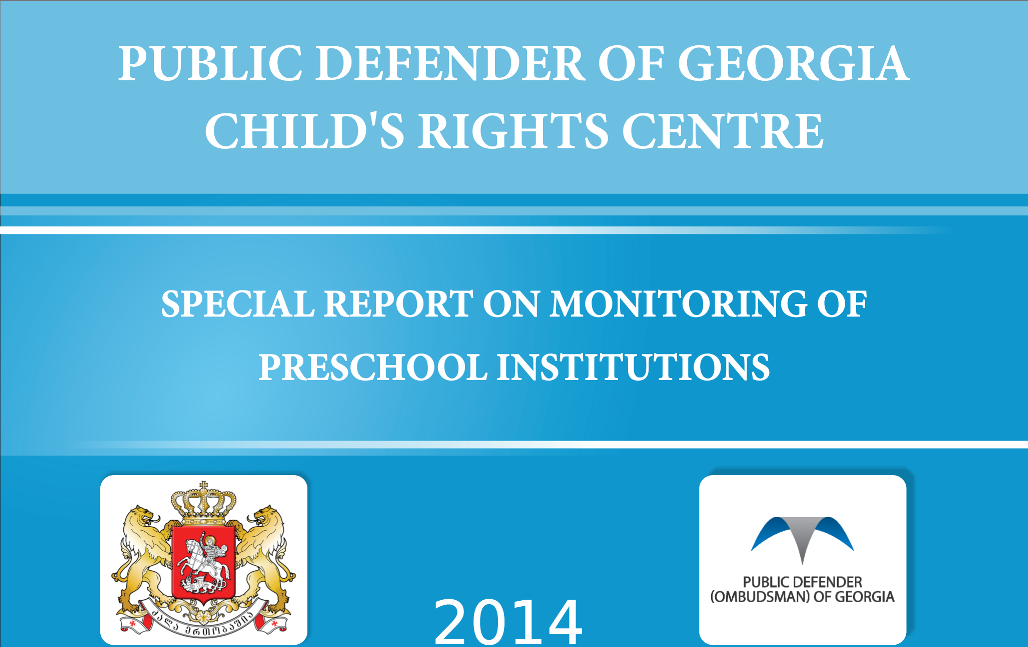 The present document represents a special report highlighting the outcomes of the monitoring mission to preschool institutions conducted by the Centre for Child’s Rights at the Public Defender’s Office of Georgia from 1 May 2014 to 31 January 2015 within the frames of Empowering the Centre for Child’s Rights supported by the United Nations Children’s Fund (UNICEF) in Georgia. Monitoring of preschool institutions1 was conducted with respect to such fundamental principles as accurate information, protection of confidentiality, trust and confidence, do no harm, impartiality, neutrality, sensitivity and professionalism.2 In addition, Concluding Observations on the Rights of the Child of 28 June 2000 and 23 June 2008 developed by the UN Committee on the Rights of the Child (CRC) were often used as references during the monitoring process. In fact, the monitoring mission looked at the extent to which the recommendations3 underscored in aforementioned documents were implemented in preschool institutions. The mission used the principles of systemic and in-depth monitoring as well as on the principles of appropriate treatment and non-discrimination.