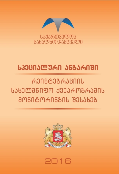 სპეციალური ანგარიში რეინტეგრაციის სახელმწიფო ქვეპროგრამის მონიტორინგის შესახებ