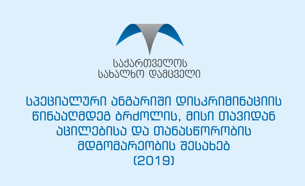 სპეციალური ანგარიში დისკრიმინაციის წინააღმდეგ ბრძოლის, მისი თავიდან აცილებისა და თანასწორობის მდგომარეობის შესახებ (2019)