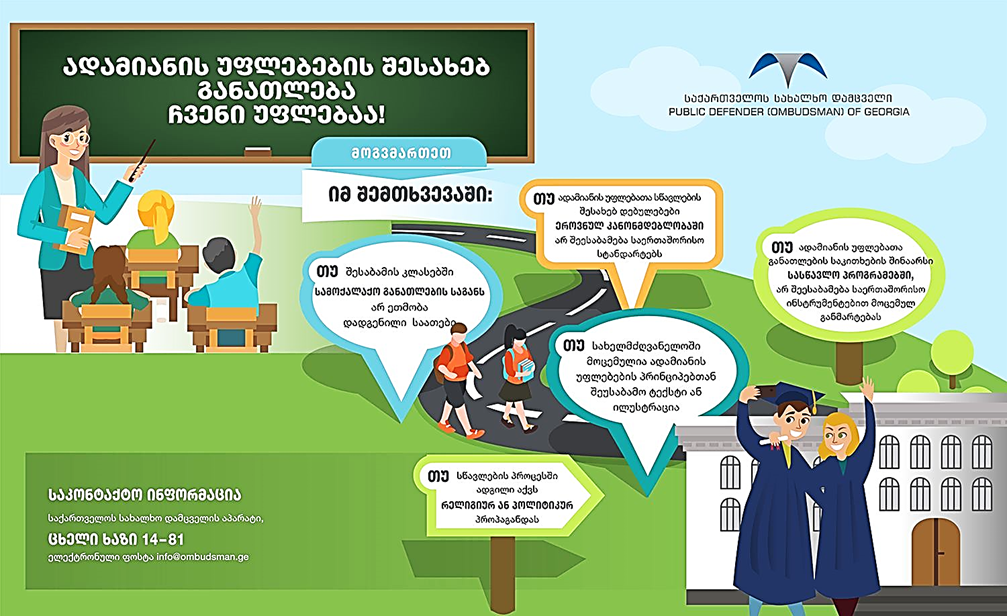 სახალხო დამცველის აპარატი, ასევე მუშაობს ადამიანის უფლებათა განათლების ხელმისაწვდომობის თაობაზე.