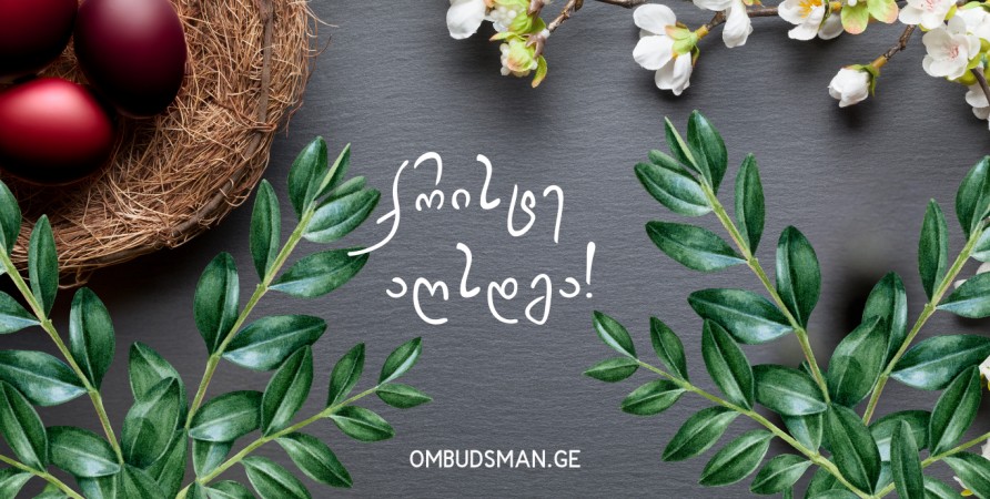 საქართველოს სახალხო დამცველი ლევან იოსელიანი საქართველოში მცხოვრებ ყველა ქრისტიანს აღდგომის ბრწყინვალე დღესასწაულს - რწმენის, იმედის და სიყვარულის ზეიმს ულოცავს და მათ ჯანმრთელობას, კეთილდღეობას და ერთიან საქართველოში ცხოვრებას უსურვებს.