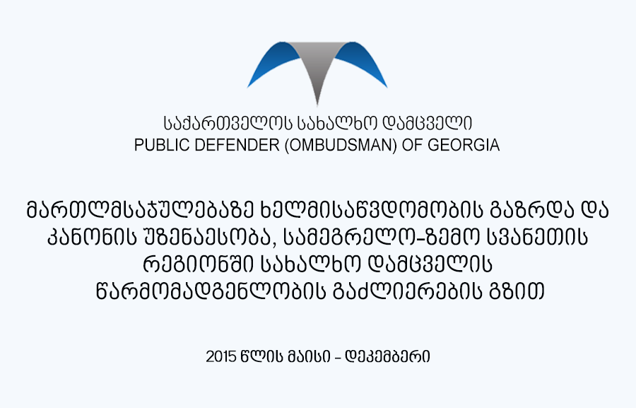 „მართლმსაჯულებაზე ხელმისაწვდომობის გაზრდა და კანონის უზენაესობა, სამეგრელო-ზემო სვანეთის რეგიონში სახალხო დამცველის წარმომადგენლობის გაძლიერების გზით“