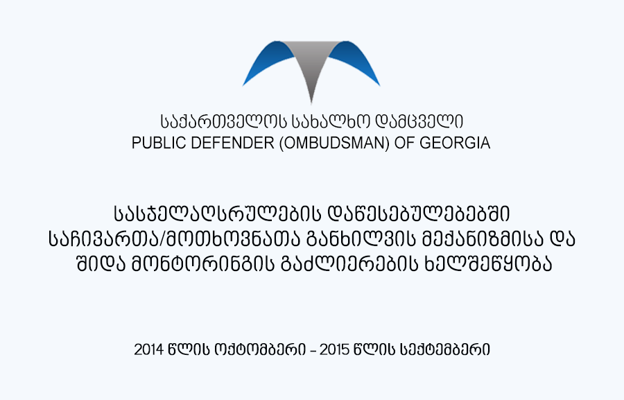 პროექტის სახელწოდება: სასჯელაღსრულების დაწესებულებებში საჩივართა/მოთხოვნათა განხილვის მექანიზმისა და შიდა მონიტორინგის გაძლიერების ხელშეწყობა.