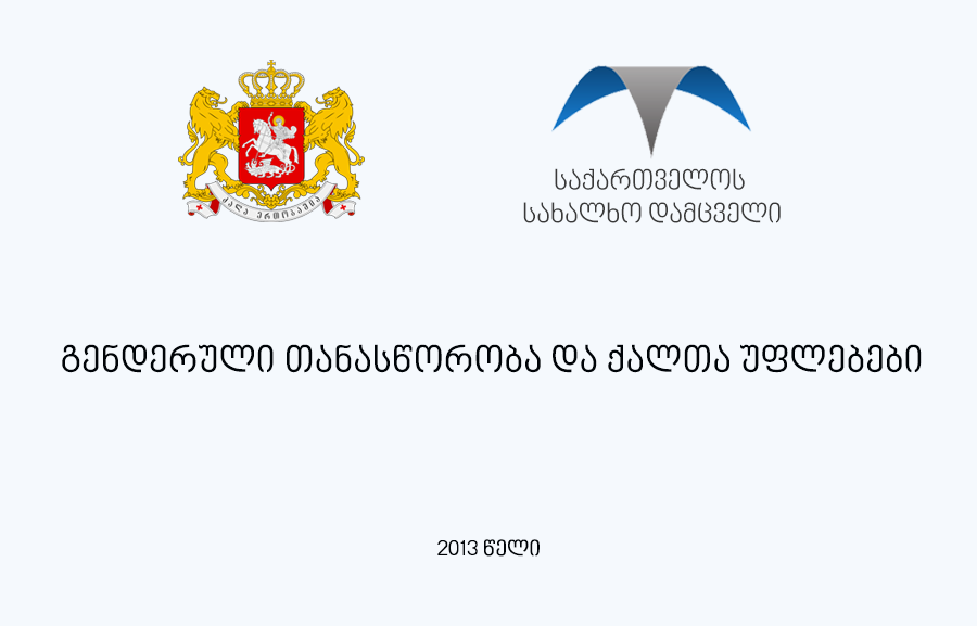 საქართველოს დემოკრატიული განვითარების გზაზე კვლავ პრობლემად რჩება გენდერული თანასწორობის მიღწევა. მიუხედავად 2013 წელს საკანონმდებლო, ინსტიტუციურ და სამოქალაქო საზოგადოების დონეზე განხორციელებული არაერთი პოზიტიური ცვლილების და აქტივობისა, საქართველოში გენდერული უთანასწორობის მაჩვენებელი კვლავ მაღალია. გათვალისწინებული იქნა საქართველოს სახალხო დამცველის 2012 წლის საპარლამენტო ანგარიშში წარმოდგენილი რეკომენდაციების ნაწილი, ხოლო ნაწილი საკითხებისა კვლავ აქტუალურ პრობლემად რჩება. გატარებული ღონისძიებების მიუხედავად კვლავ მაღალია ქალთა დისკრიმინაციის მაჩვენებელი დასაქმების ადგილზე, ოჯახში ძალადობა, გენდერული ნიშნით ძალადობა, გენდერული იდენტობისა და სექსუალური ორიენტაციის ნიშნით ძალადობა, ადრეული ქორწინების გაზრდილი შემთხვევები და სხვა.