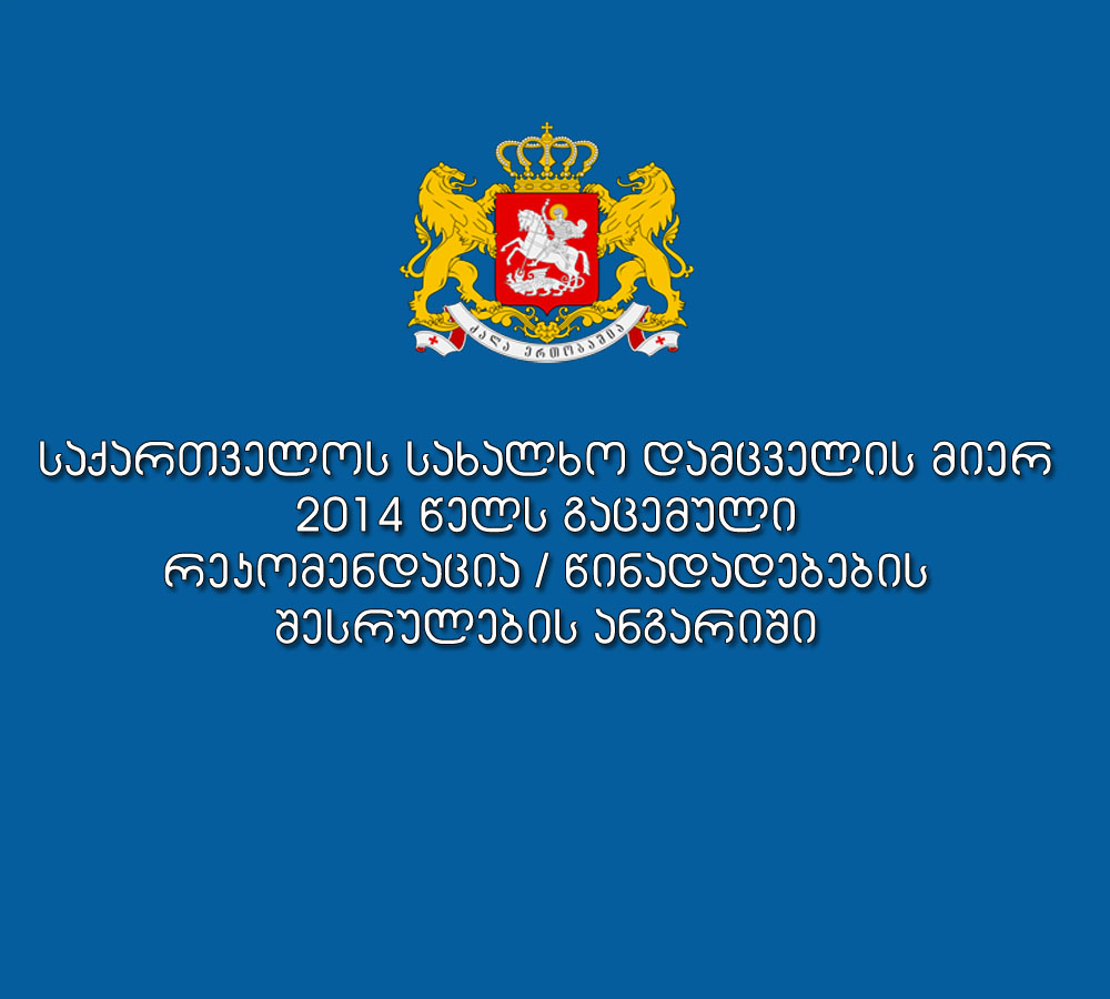 საქართველოს სახალხო დამცველის მიერ 2014 წელს გაცემული რეკომენდაცია/წინადადებების შესრულების ანგარიში