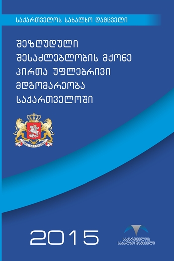 წინამდებარე ანგარიშში ასახულია შეზღუდული შესაძლებლობის მქონე პირთა უფლებების მდგომარეობა 2015 წლის მონაცემებით.