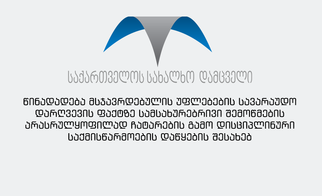 წინადადება მსჯავრდებულის უფლებების სავარაუდო დარღვევის ფაქტზე სამსახურებრივი შემოწმების არასრულყოფილად ჩატარების გამო დისციპლინური საქმისწარმოების დაწყების შესახებ